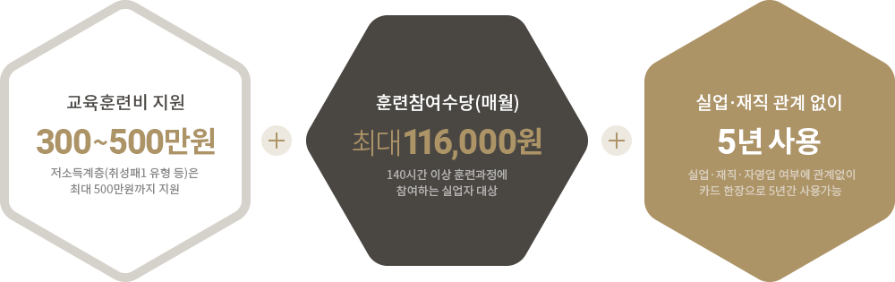 실업자·재직·자영업 여부에 관계없이 국민내일배움카드를 통해 훈련비를 지원하며
